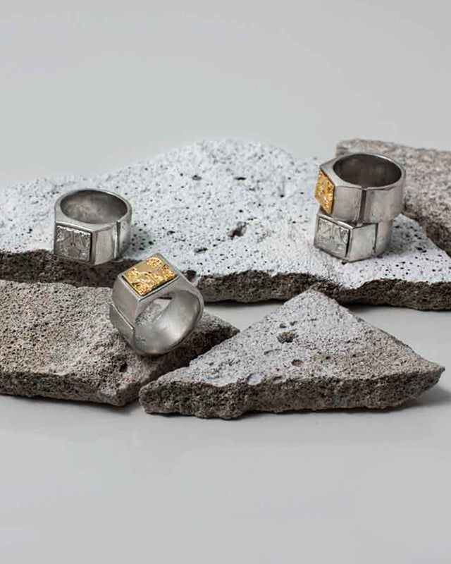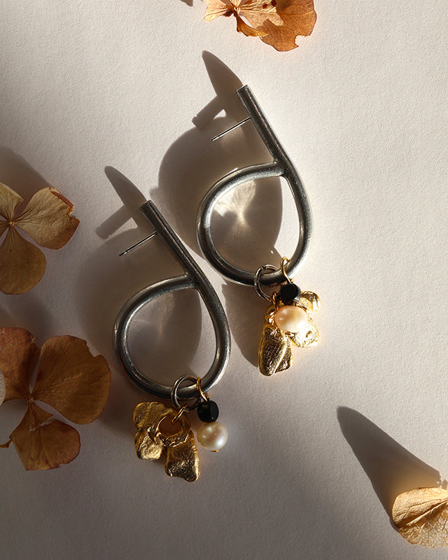 Every piece is one-of-a-kind and crafted by hand in Montreal, using high-quality materials. The distinctiveness of pewter, glass, resin, and pearls, with subtle variations in their shapes and colors, gives each piece of jewelry a unique allure.